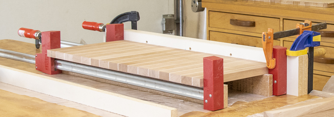 to each end of the maple piece to keep it flat when I tighten the clamps that