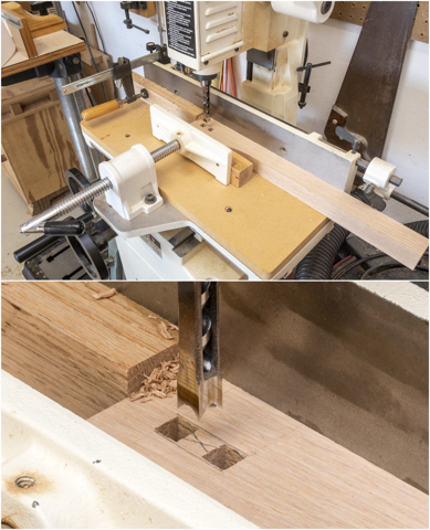 with satin lacquer thinned by about a third or so. The seat frame is set on painter’s triangles
