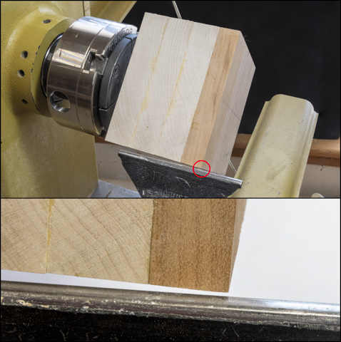 want the joints to be 90 degrees to the center axis of the lathe so the glue