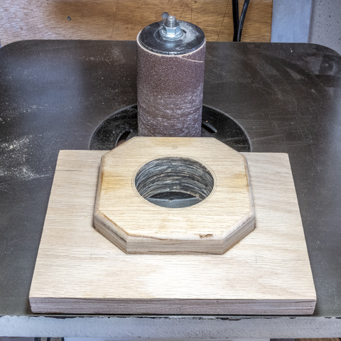 tilting the table a couple of degrees and rotating the workpiece so the sanded